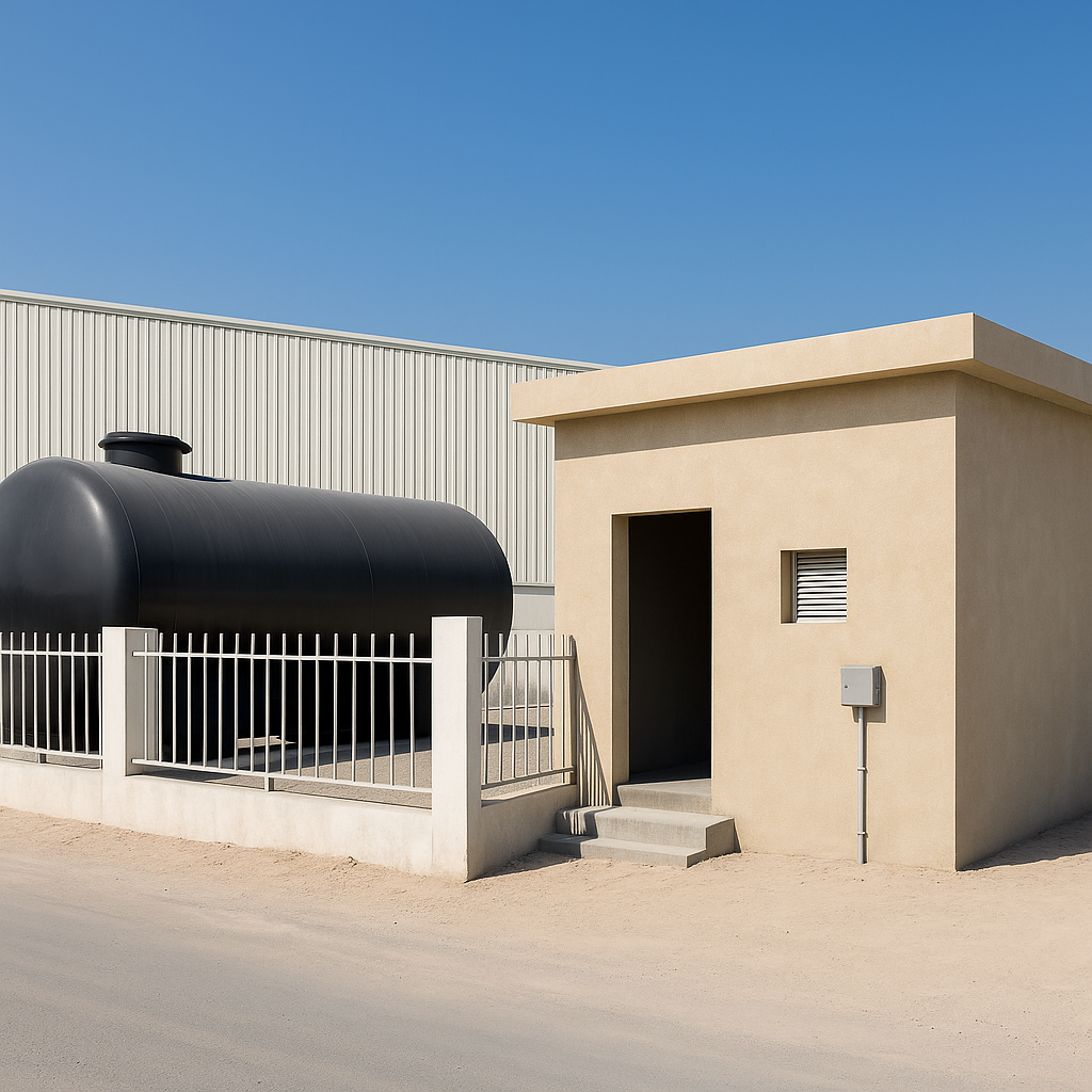 sdsfThe pump room and underground water tank were designed according to Dubai Civil Defense standards, ensuring complete fire-safety readiness. Durable materials, insulated wall panels, and low-maintenance finishes contribute to long-term sustainability and reliability.