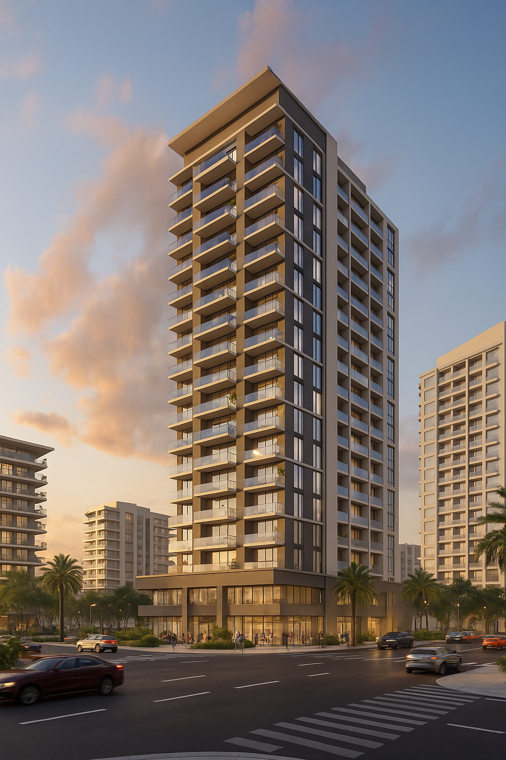 Located in Jumeirah Village Circle, this project combines architectural sophistication with functional luxury. Featuring four podiums and twelve upper floors, the development offers residents premium lifestyle amenities including a gym, pool, and retail spaces. Each residence is crafted for comfort, style, and connectivity.
